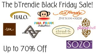 Btrendie is having a Big Black Friday Sale with prices up to 70% off! They will be featuring the following brands: Tea, Peanut Shell, Cloud b, Sozo, Ed Hardy Kids, Paul Frank, Adrienne Vittadini (Purses), and HALO.
